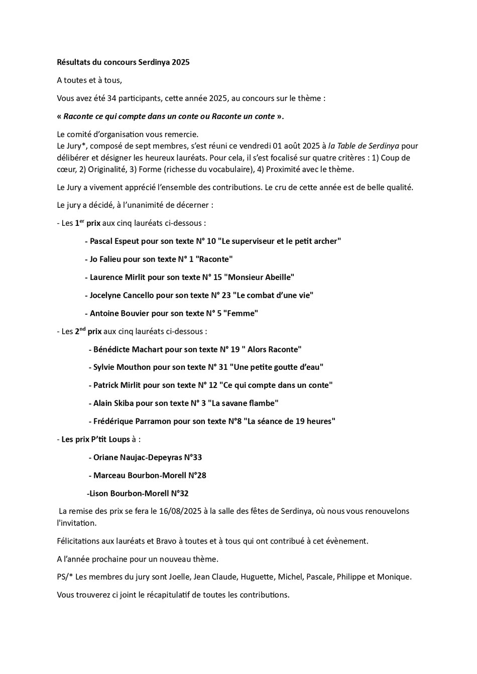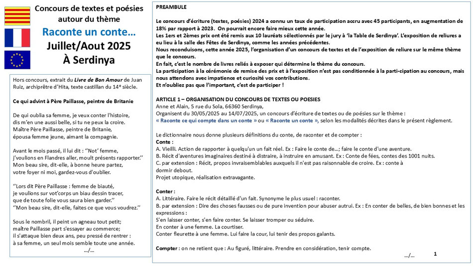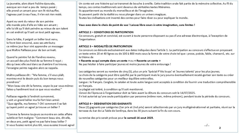 Récapitulatif de tous les contes du concours 2025 à Serdinya sur le thème 'Raconte ce qui compte dans un conte ou Raconte un conte'